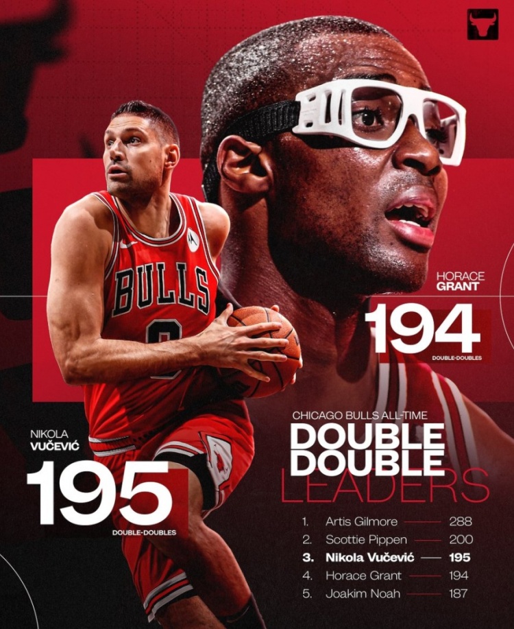 2025-03-11 10:45:45武切維奇公牛兩雙數(shù)超越”眼鏡蛇“格蘭特 上升至隊(duì)史第三位