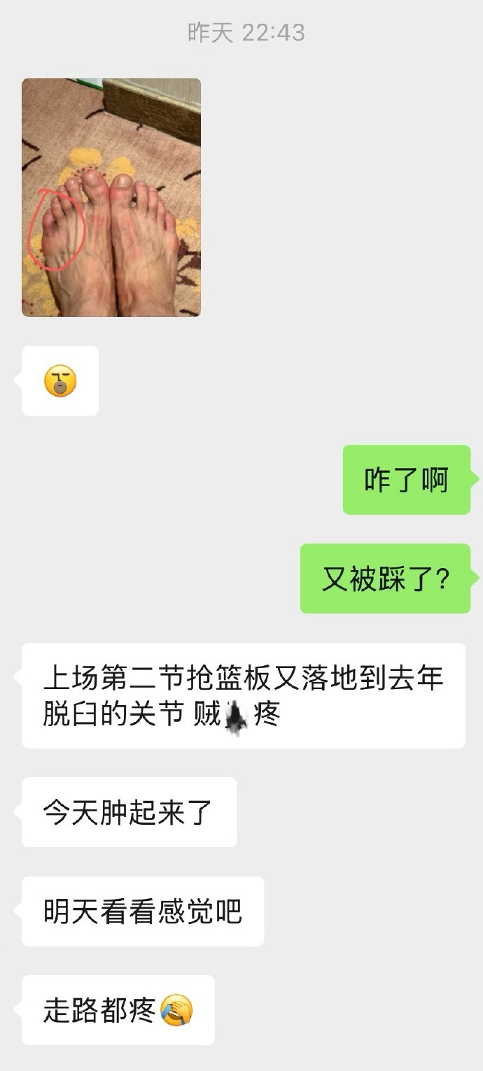 李弘權(quán)上一場(chǎng)第二節(jié)搶籃板的時(shí)候又傷到了去年脫臼的腳趾關(guān)節(jié),賽前吃了兩粒止疼藥上去打的。