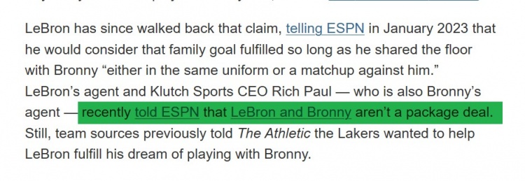 到了2024年6月20日選秀大會前夕,詹姆斯父子的經紀人里奇-保羅在接受ESPN采訪時透露,布朗尼只為湖人和太陽兩支球隊試訓過。