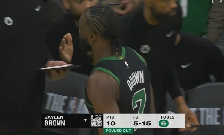 2025-03-13 16:19:41今天拉了!杰倫-布朗外線狂打鐵 全場15中5得10分且6犯離場!