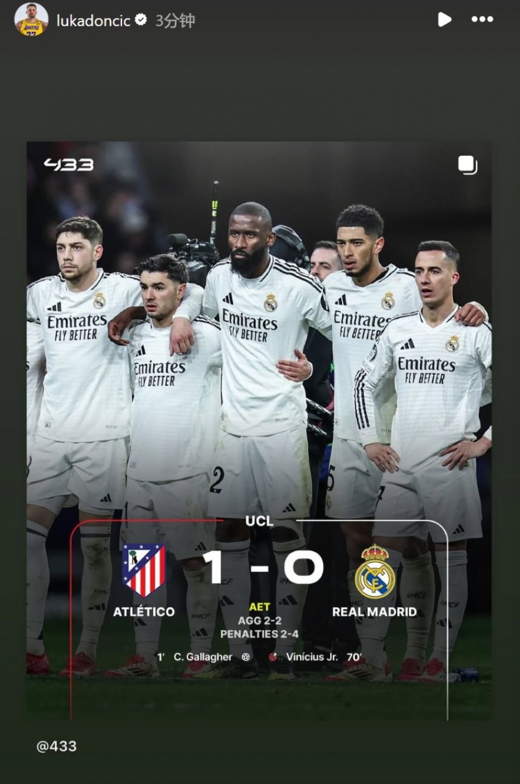 2025-03-13 16:35:19皇馬淘汰馬競晉級歐冠八強!東契奇INS轉發祝賀老東家