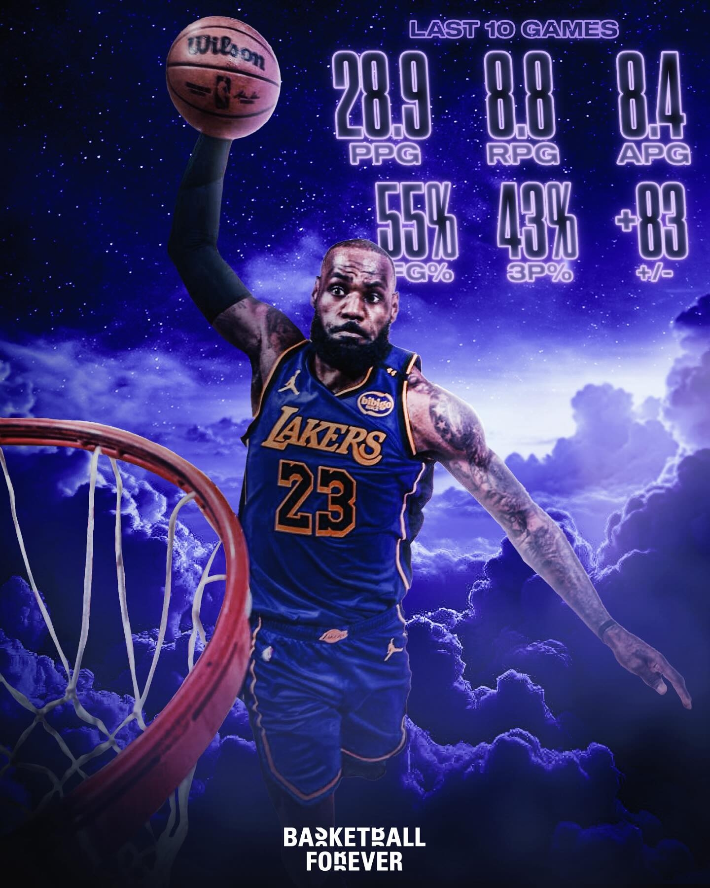 2025-02-24 16:11:17詹姆斯過去10場場均28.9分8.8板8.4助 命中率55%三分43%正負值+83