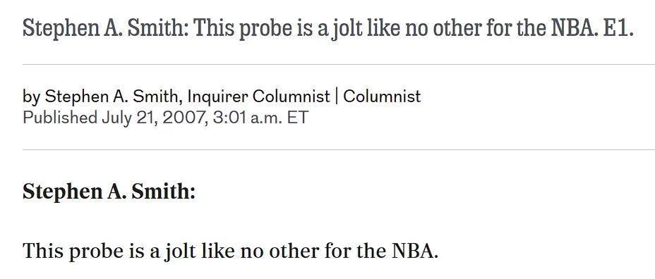 在《一樁事先張揚的謀殺案》中,相信主角清白的法官,說出了這么一句話:「給我一個偏見,我將撬動地球」。而史蒂芬·A·史密斯的職業生涯,某種意義上可以概括為:給我一個詹姆斯,我將撬動體育圈最多的流量。