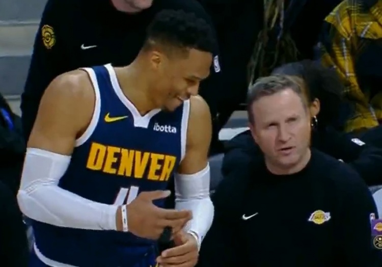 2025-03-15 21:18:12很輕松啊!威少在場邊和恩師斯科特-布魯克斯聊上幾句
