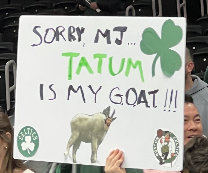2025-02-24 16:15:22??綠軍主場球迷舉牌:對不起了喬丹 塔圖姆才是我心目中的GOAT