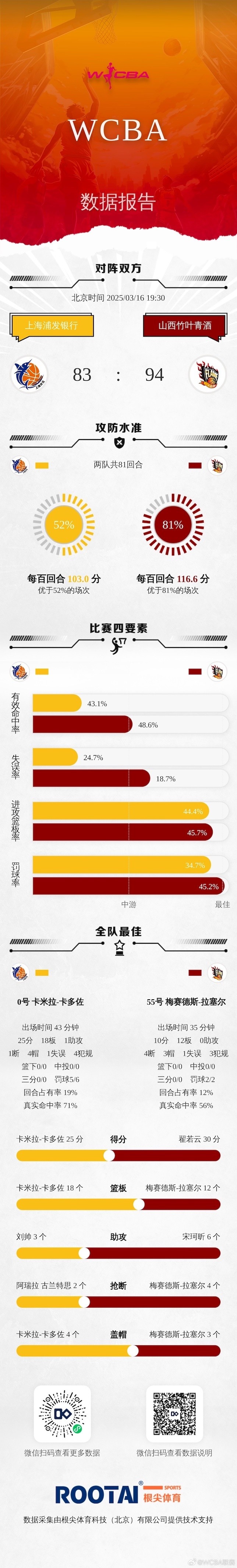 2025-03-16 22:08:29WCBA季后賽1/4決賽G4:山西戰勝上海 山東不敵東莞 內蒙古勝新疆