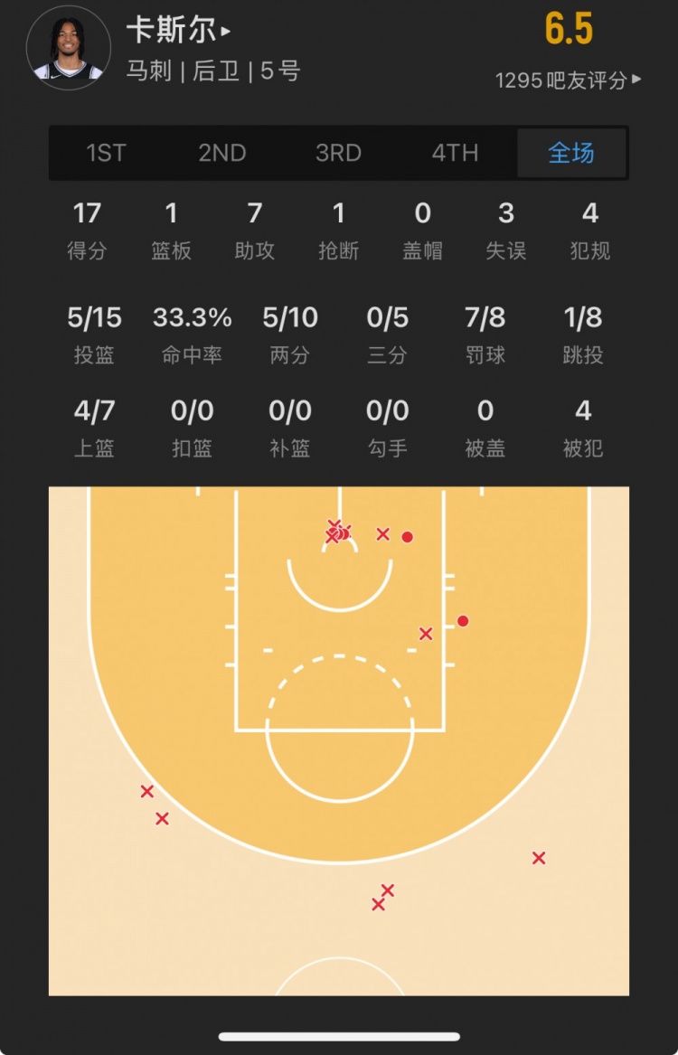 馬刺4號秀 斯蒂芬-卡斯爾 登場35.9分鐘