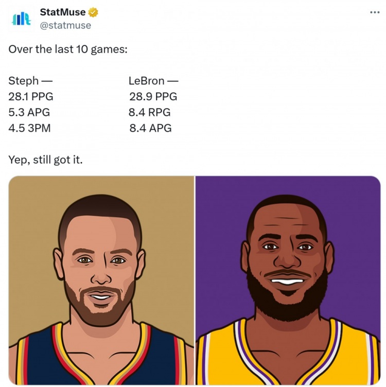 2025-02-25 00:25:52寶刀未老!近10戰庫里場均28.1分&進4.5三分 詹姆斯28.9+8.4+8.4