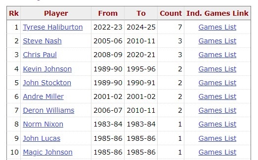 2025-03-16 22:58:04哈利伯頓8次打出20+15助+0失誤 比保羅魔術師斯托克頓總和還多