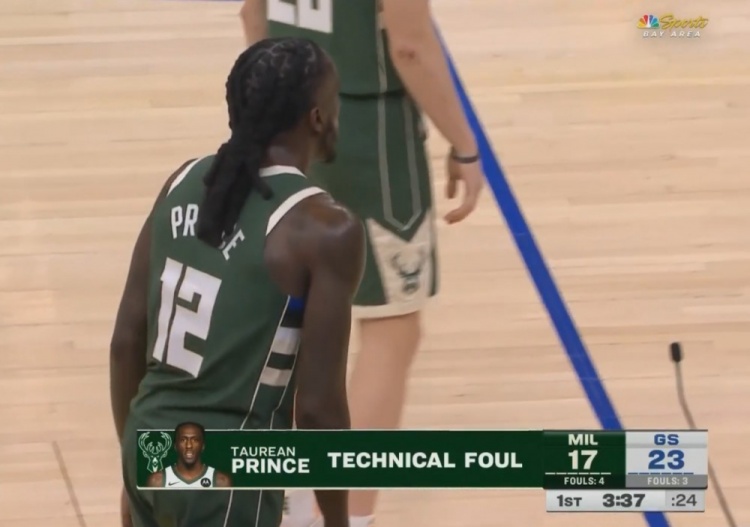 2025-03-19 10:35:46庫明加轉換反擊上籃造成犯規 普林斯不滿抱怨吃到技術犯規!