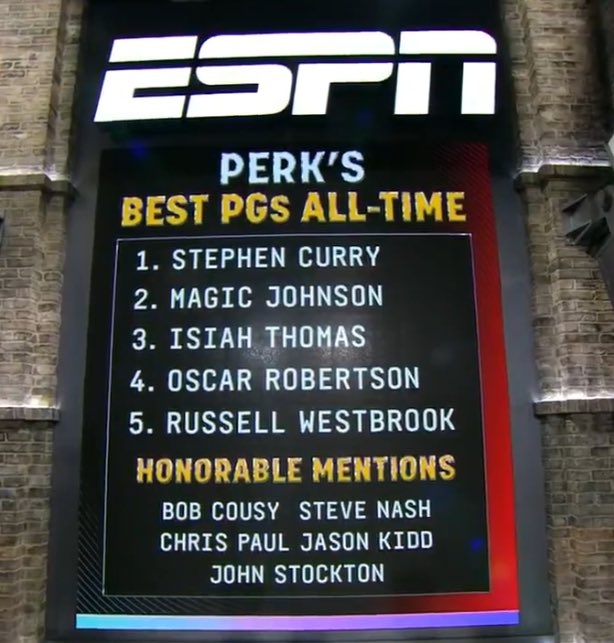 2025-03-20 21:38:46帕金斯評歷史前5控衛:庫里&魔術師&托馬斯&大O&威少