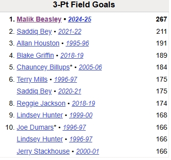 2025-03-20 21:52:26比斯利本賽季突破270記三分球 活塞隊史首位達成此成就的球員