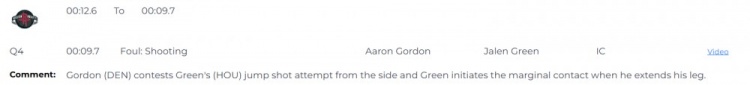 2025-03-25 16:54:30火箭VS掘金裁判報告:錯判阿隆-戈登對杰倫-格林三分犯規