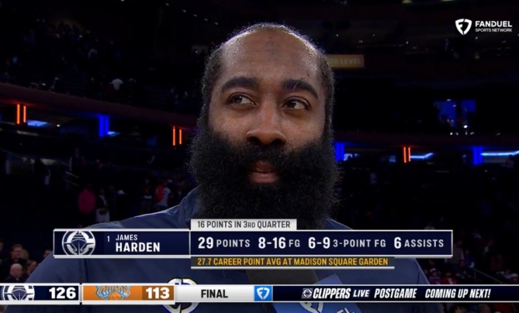 2025-03-27 19:01:19大舞臺球員!哈登生涯在麥迪遜廣場花園比賽場均27.7分