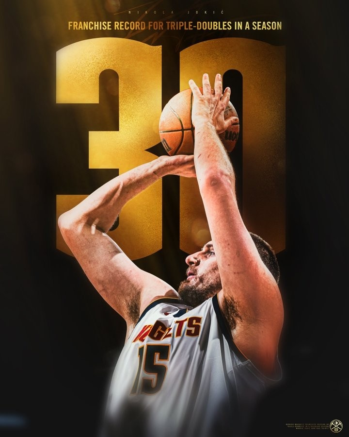 2025-03-27 19:01:55打破自己保持的隊(duì)史紀(jì)錄!掘金官方曬海報(bào):約基奇單季30次三雙!