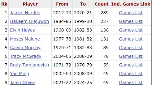 2025-03-31 18:17:11杰倫-格林生涯第50場比賽30+ 超越姚明 獨享隊史第8位