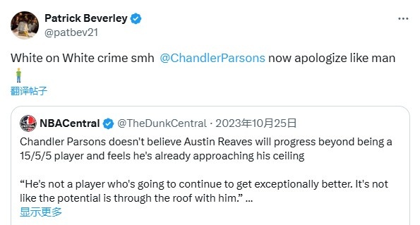 2025-03-31 18:25:58“15+5+5是里夫斯的極限”!貝弗利打臉帕森斯:像個男人出來道歉