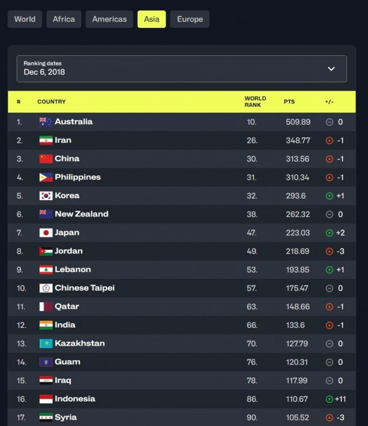 2018年12月,關島第一次有了世界排名,落在了亞洲第14,世界第79的位置