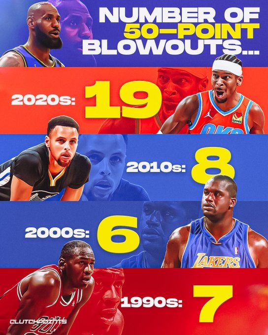 2025-03-02 09:18:07常規賽分差50+場次:2020年至今19次 20年之前30年21次