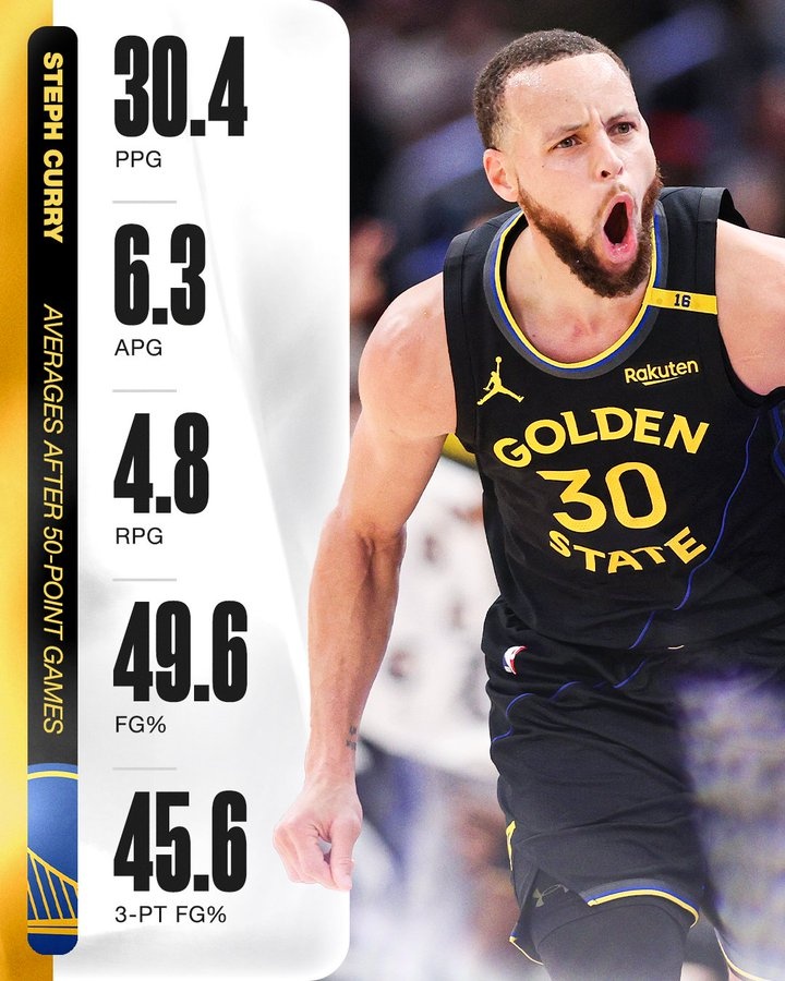 2025-03-02 09:19:57庫里50分場次過后下一戰場均數據:30.4分6.3助 三分命中率45.6%