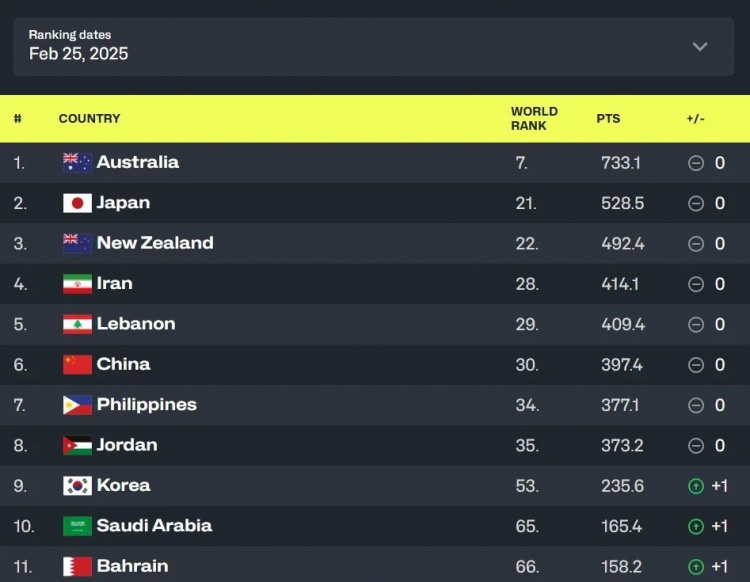 當你把最近十幾年的世界排名翻出來對照后,你會發現2018年是一個極特殊的節點。在此之前的2016年年底的排名里,中國男籃仍然能占據第14名的不俗位次,那時姚主席已退役七年之久,然而在2018年3月闊別一年的更新之后,男籃一路俯沖到第28名,自此再也沒能翻身,七年來總是被困在27-30名的區間,而日本、伊朗、黎巴嫩已悄然躍至我們前面。