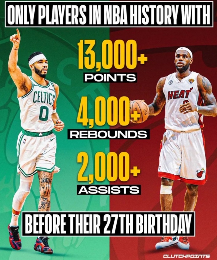 2025-03-04 11:03:50塔圖姆27歲前至少13000分4000板2000助 歷史唯二&比肩詹姆斯