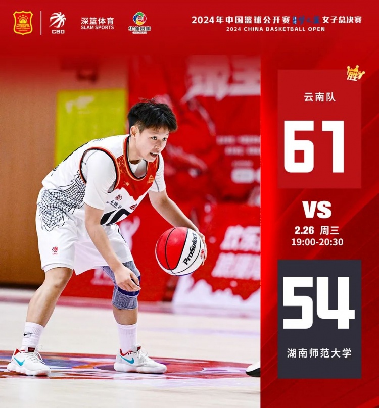 云南隊和湖南師范大學在本輪相遇,實力相當的兩支球隊打得相對膠著。上半場,10平后,湖南師范大學30號趙詩雨兩分命中,隨后6號沈思榆外線再貢獻一個三分球,15-10湖南師范大學超出。云南隊依靠6號羅菲和14號娜漢的進攻緊咬比分。半場結束云南隊落后湖南師范大學1分。下半場,兩隊依舊難解難分。在云南隊幾次外線得分實現反超,14號娜漢外投內突,連續得分,云南隊士氣大漲,最終云南隊61-54戰勝湖南師范大學。