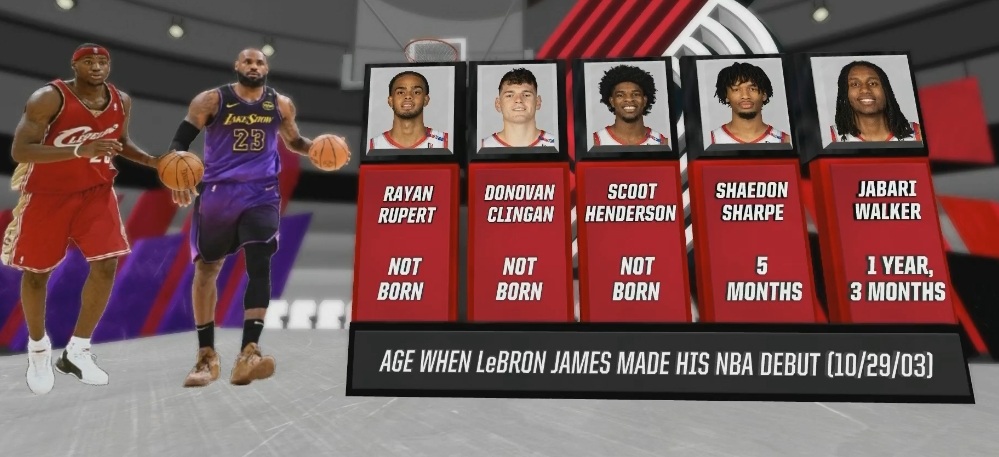 2025-02-21 17:46:00轉播方曬圖:詹姆斯生涯首秀 開拓者三名球員還沒出生