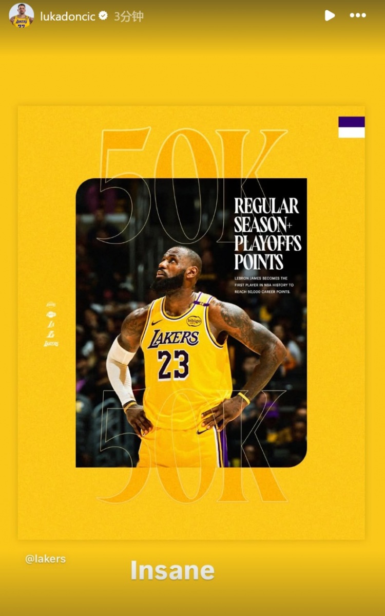 2025-03-05 22:12:41加入湖人成網癮少年!東契奇轉發詹姆斯50000分海報:太瘋狂啦