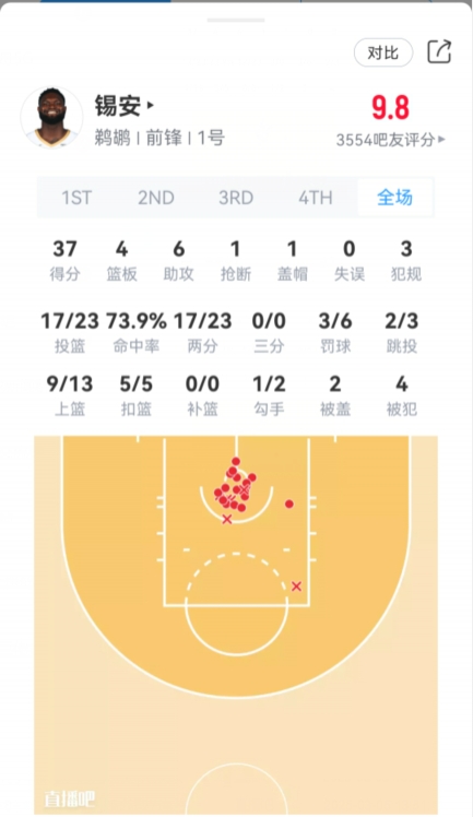 2025-03-05 22:21:33夸張!錫安和他的模板投籃熱圖對比:一個全在籃下 一個覆蓋半場