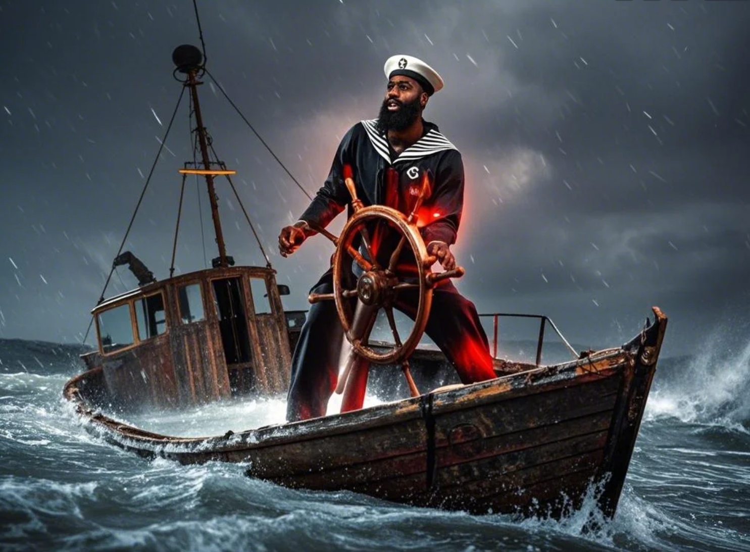 2025-03-06 22:01:13【AI繪圖】大胡子船長率風雨飄搖中即將沉沒的小破船重回正軌~