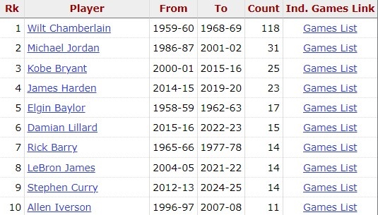 2025-03-06 22:03:27哈登生涯第24場常規(guī)賽50+ 歷史第4多 僅次于張伯倫&喬丹&科比