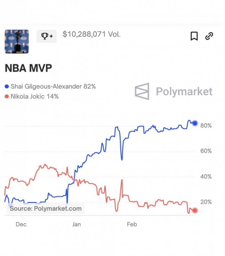 2025-03-08 21:18:32砍31分21板22助!美媒更新MVP概率:約基奇僅14% 亞歷山大82%