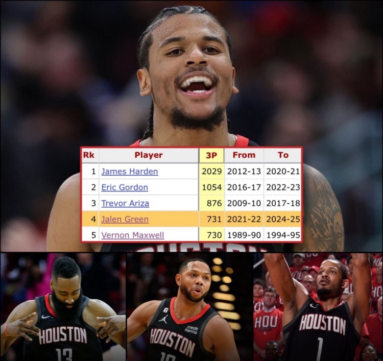 2025-03-10 09:57:23杰倫-格林已命中731個三分 來到火箭隊史第4&哈登/戈登/阿里扎前3