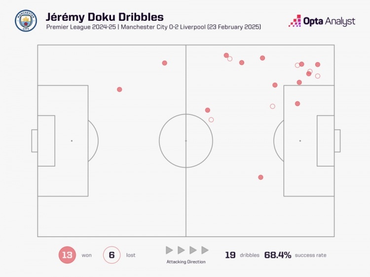 2025-02-24 16:05:18多庫本場19次嘗試過人13次成功,均創造本賽季英超的紀錄