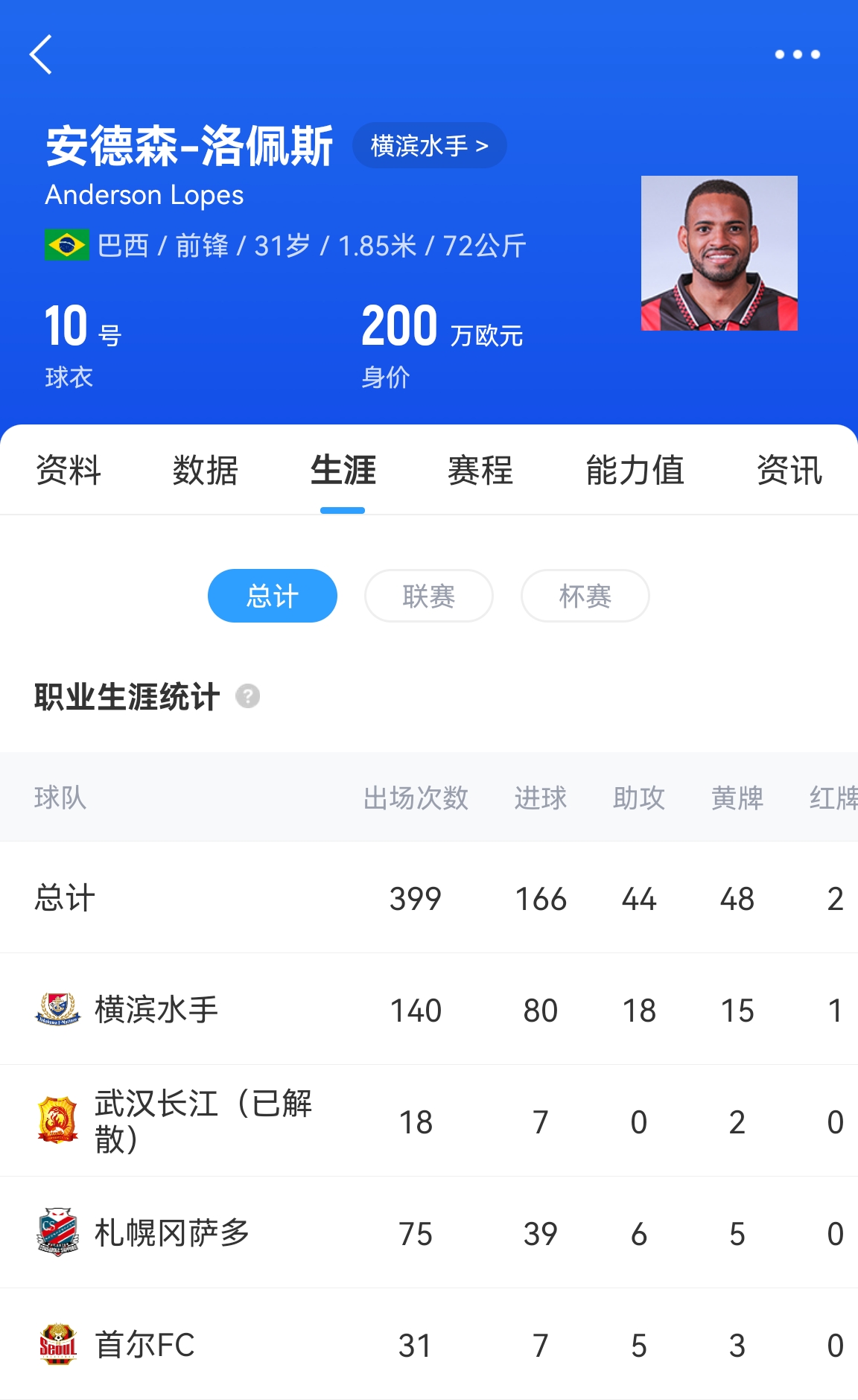 2025-03-11 23:07:33中超解散隊舊將...橫濱隊長洛佩斯打入海港3球 曾代表武漢18場7球