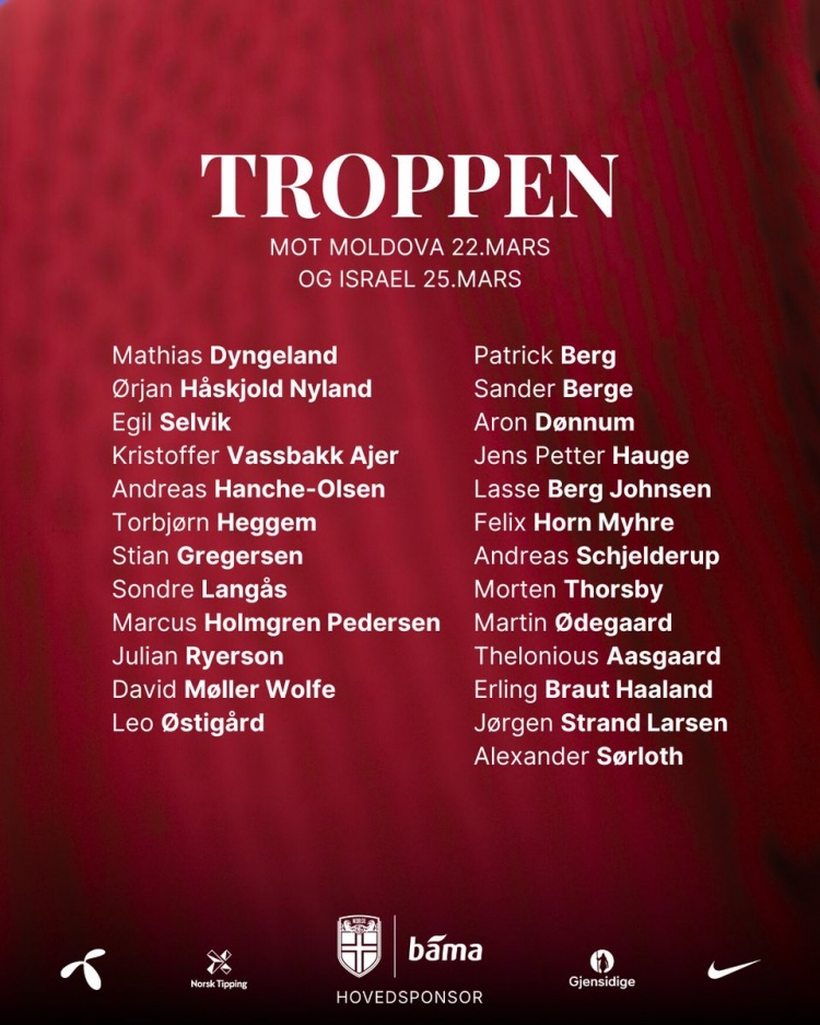 2025-03-11 23:18:14挪威世預賽大名單:哈蘭德、厄德高領銜,索爾洛特在列