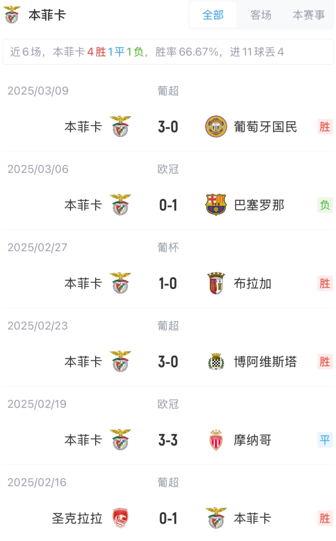 本菲卡替補:24-索亞雷斯、71-萊昂納多-桑托斯、81-阿德里安-巴杰拉米、64-貢薩洛-奧利維拉、25-普雷斯蒂亞尼、60-努諾-菲利克斯、84-若昂-雷戈、85-桑謝斯、18-巴列羅、7-阿姆杜尼、9-卡布拉爾、19-貝洛蒂