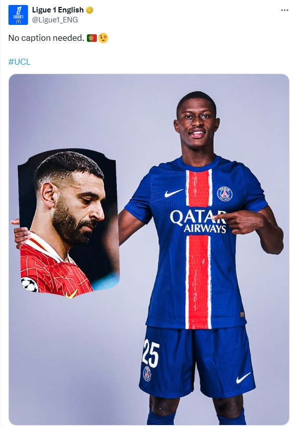 2025-03-12 09:51:35拿捏!法甲官推曬照:努諾-門德斯手持薩拉赫卡片