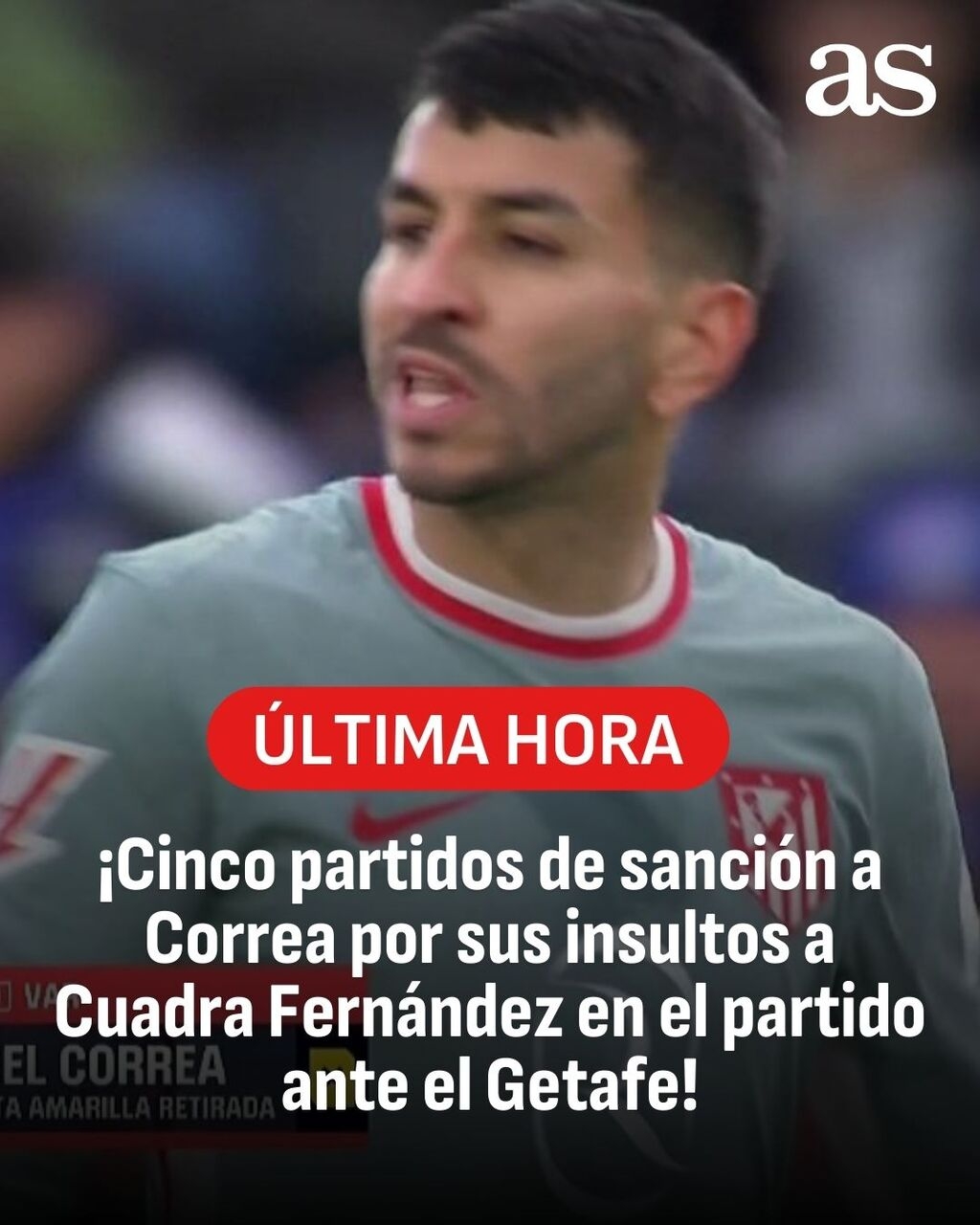 本紀律委員會決定駁回馬德里競技俱樂部的申訴,并對球員安赫爾-科雷亞作出以下處罰: