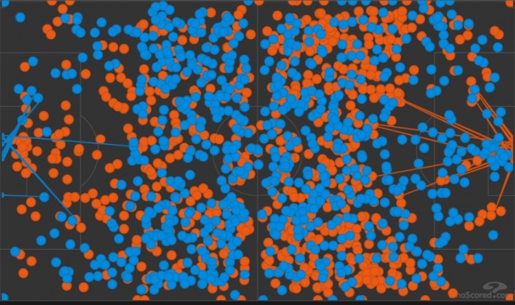 對比之下,馬競的足球哲學(xué)則更加偏向于在穩(wěn)定防守后,完成的中路控制及推進(jìn)保障,這通過他們傳遞的路線圖也能夠看出,中場的銜接對馬競來說可是太重要了,能不能順暢的過了中線,將會決定他們接下來向前推進(jìn)的效率。對此,后腰的作用格外重要。