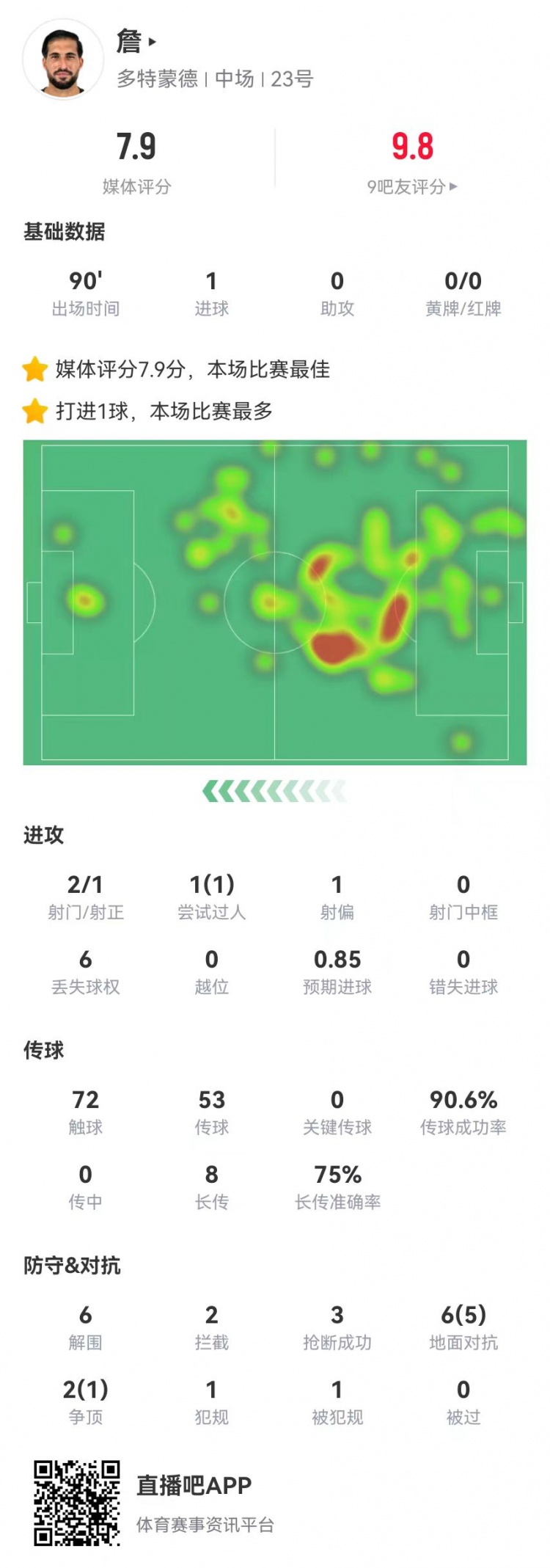 2025-03-13 06:49:54官方:埃姆雷-詹當選全場最佳,點射扳平+6解圍2攔截3搶斷