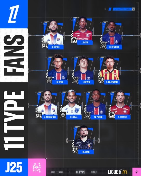 2025-03-13 06:52:38法甲本輪最佳陣:登貝萊領銜,內維斯、杜埃和帕喬入選