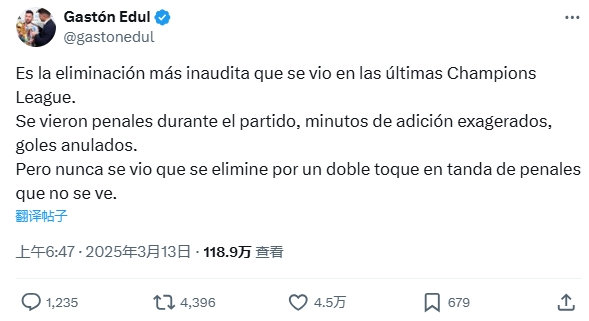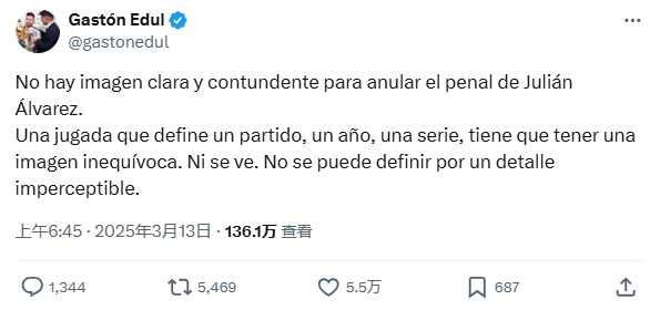 2025-03-13 12:31:38阿根廷名記:不可思議,從未見過因看不清的二次觸球而被淘汰