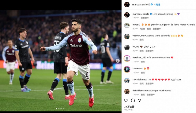 2025-03-13 12:38:298場7球&將戰巴黎!阿森西奧社媒曬慶祝照:讓我們繼續保持夢想