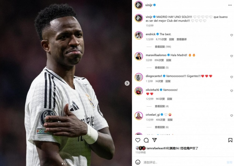 2025-03-13 12:38:53維尼修斯社媒發文:馬德里只有唯一,作為世界最佳球隊一員太棒了