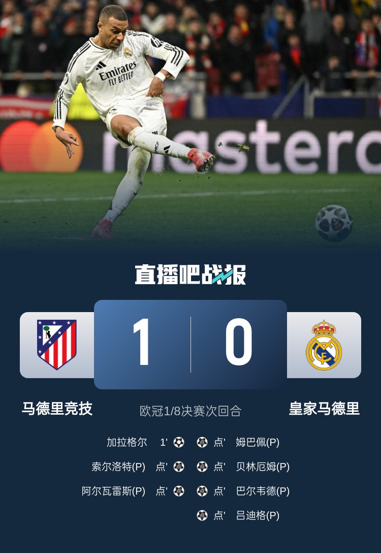 2025-03-13 07:25:292025年03月13日 皇馬總比分2-2點球4-2淘汰馬競 8強將戰阿森納 小蜘蛛點球違例