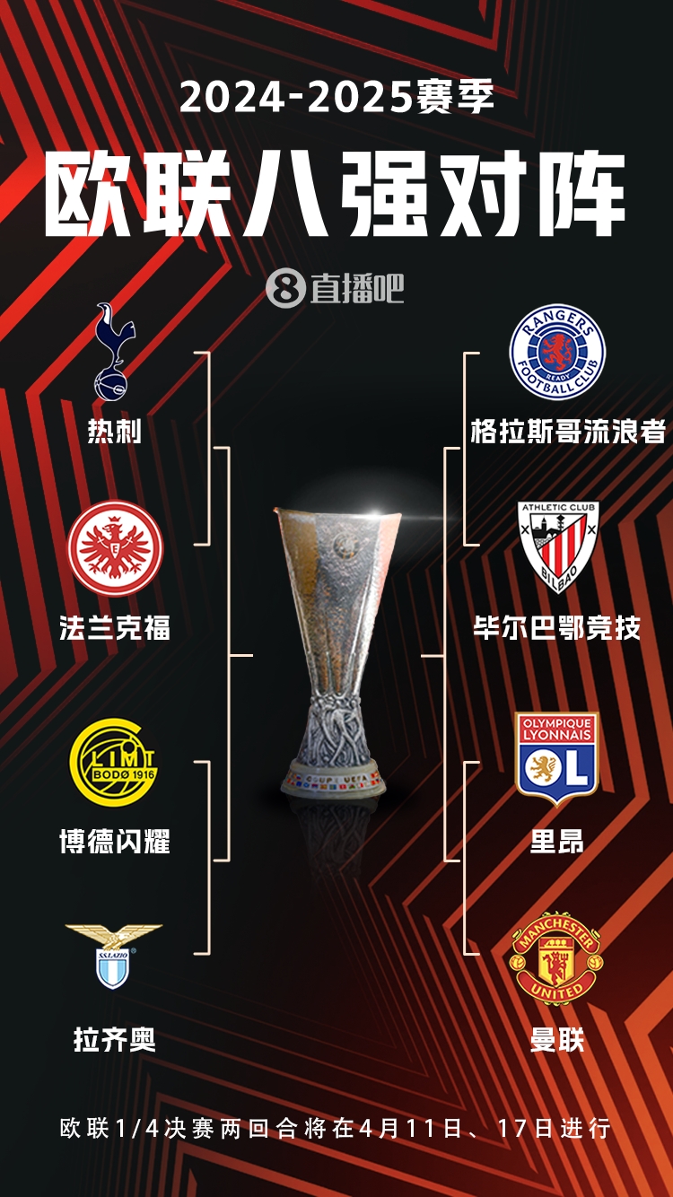 ??歐聯8強對陣:曼聯vs里昂,流浪者vs畢巴,熱刺vs法鷹