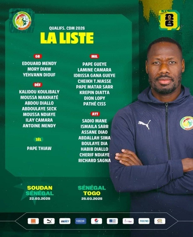 當地時間本周四,塞內加爾國家隊公布了新一期大名單,備戰接下來對蘇丹(3月22日)和多哥(3月25日)的兩場世界杯非洲區預選賽。其中阿薩內-迪奧首次入選塞內加爾國家隊。