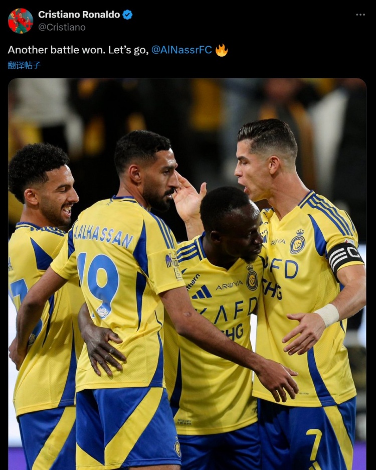 2025-03-15 17:01:31生涯928球!C羅社媒慶祝勝利:又贏下一場戰斗!讓我們繼續前進!